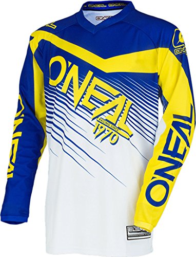 O'Neal | Maglia Motocross Manica Lunga | MX Enduro | Protezione Gomito Imbottita, Collo a V, Traspirante | Element Jersey Racewear | Adulto | Nero Blu | Taglia XL