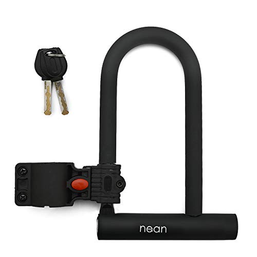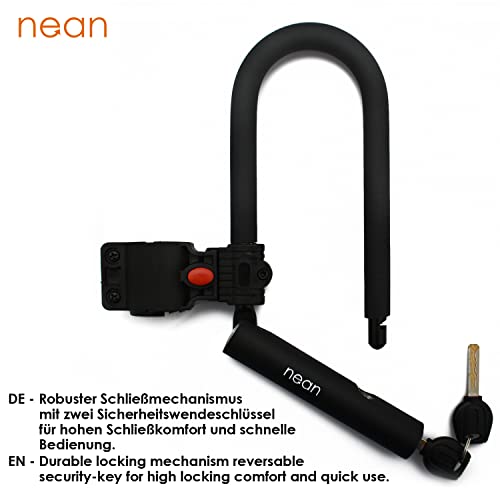 Nean Lucchetto per bicicletta con supporto e 2 chiavi di sicurezza, Ø 12 mm, 207 x 138 mm, nero
