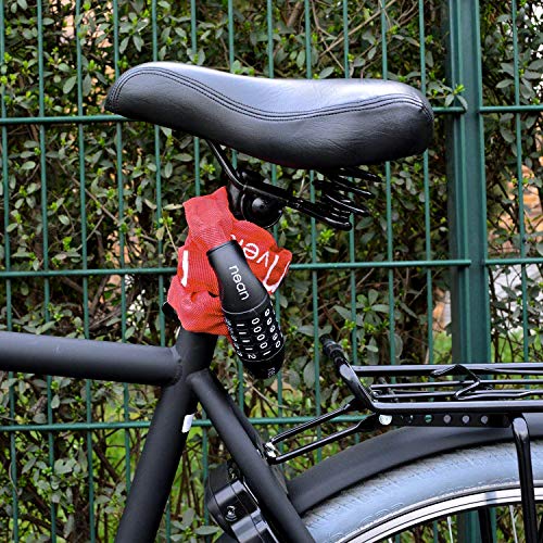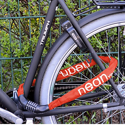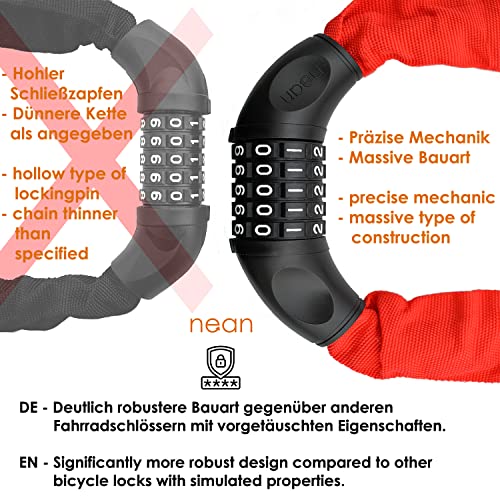 Nean Lucchetto con combinazione, con catena in maglie in acciaio, per bicicletta e moto 6 x 900 mm, nero (rosso)