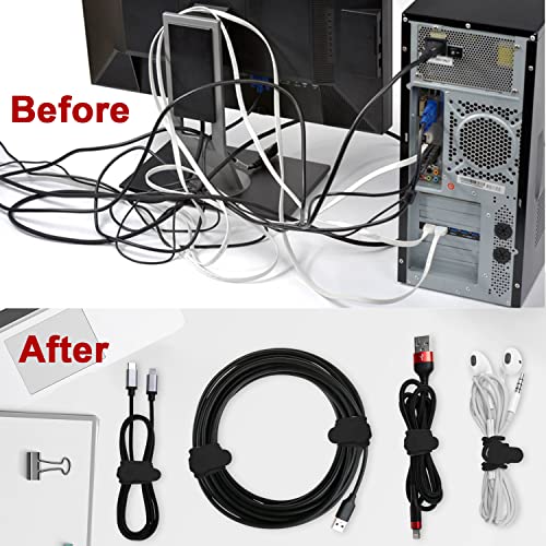 Nearockle 16 fascette stringicavo in silicone per auricolari, caricabatterie per telefono, mouse, audio, computer, riutilizzabili, organizer per cavi in casa, ufficio, cucina, scuola (nero)