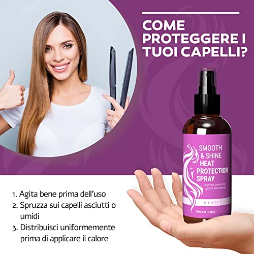 Neatly Spray Termoprotettore Capelli Piastra con Cheratina - 250ml - Protettore Termico Capelli Effetto Anticrespo - Termoprotettore per Capelli Senza Siliconi