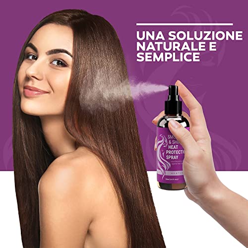 ☀️ PROTEGGI I TUOI CAPELLI DALLA PIASTRA: Proteggere i tuoi capelli non è mai stato così semplice! Lo spray protettivo capelli piastra e phon, oltre ad essere efficace contro i danni del calore, semplifica lo styling. Con lo spray protezione solare capelli avrete una chioma sempre idratata e profumata.