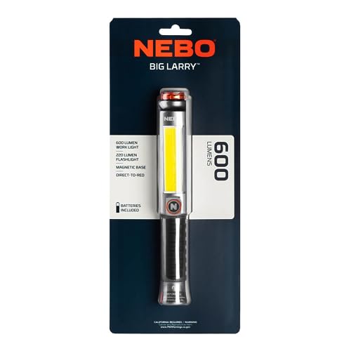NEBO Big Larry 3 - Lampada da lavoro da 600 lumen, con luce da lavoro COB, base magnetica con clip tascabile, per illuminazione a mani libere, torcia portatile COB LED dimmerabile, luce di pericolo,