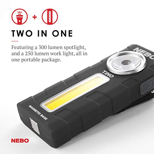 NEBO TiNO, luce tascabile sottile, 300 lumen, dimmerabile, base magnetica, nero