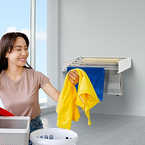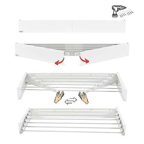 Nebu! Stendibiancheria da parete, pieghevole, 100 cm, in acciaio inox, per interni ed esterni (bianco)