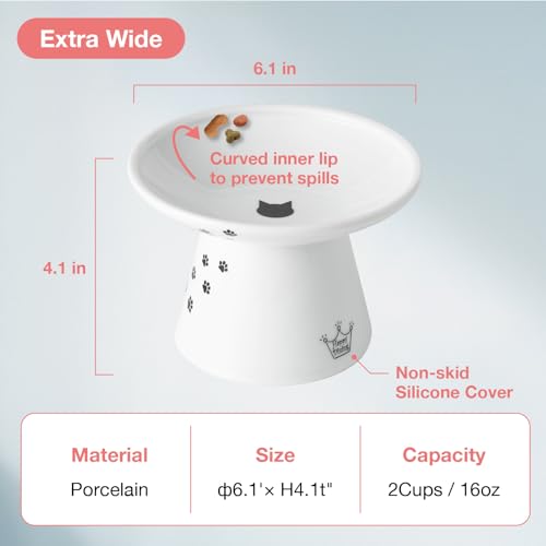 Necoichi Ciotola rialzata Extra Larga per Cibo per Gatti, Bianco, XL, 0,6 kg