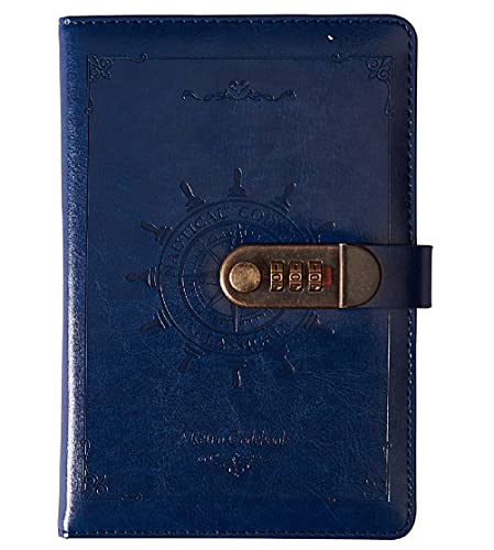 NectaRoy PU Pelle Diario Taccuino, A5 Diario di Viaggio con Password Bloccare, vintage Taccuino Righe 240 Pagine, diario segreto floreale goffrato, Quaderno Scrittura per ufficio Scuola, 210x145mm