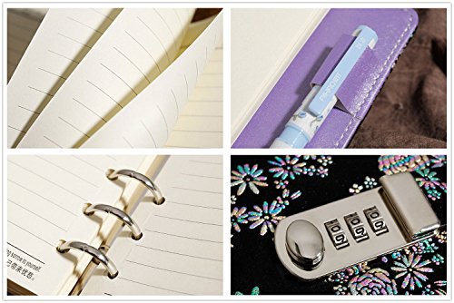 NectaRoy PU Pelle Riempibile Foglia Allentata Diario Taccuino con Serratura a Combinazione, 3D Sbalzato Modello Progettista Organizzatore con Portapenne e Slot per Schede, Taglia 185x135mm