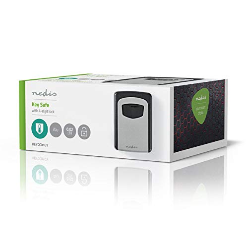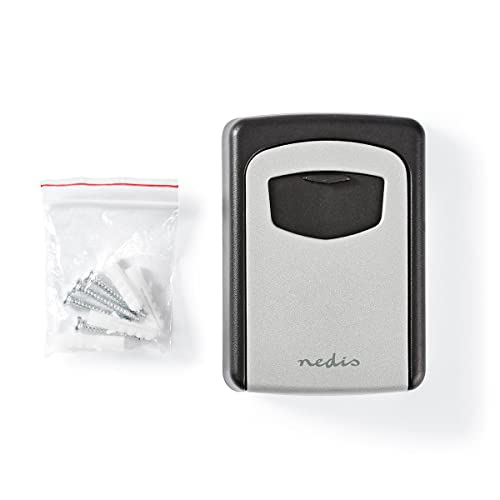 NEDIS Cassaforte per Chiavi - Resistente e Durevole - 4 rotelline con 10 cifre - Copertura Antipolvere - Grigio/Nero Nero/Grigio