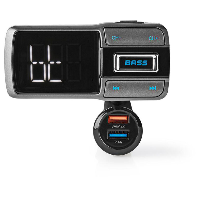 Sei stanco dell'autoradio? Quindi goditi le tue playlist mentre guidi con questo trasmettitore FM Nedis® Bluetooth® 5.0. Con questo dispositivo puoi riprodurre musica dal tuo smartphone o tablet tramite l'autoradio. L'innovativa funzione Bass Boost offre bassi più profondi premendo un pulsante. Ma questo trasmettitore è più intelligente: puoi anche collegare due dispositivi contemporaneamente. Dispone di una connessione da 3,0 A per caricare i dispositivi USB alla massima velocità e di una seconda connessione USB da 2,4 A che consente di caricare i dispositivi più velocemente e con una tensione più elevata. Il microfono integrato e la funzione di controllo vocale ti consentono di effettuare chiamate in vivavoce in tutta sicurezza durante la guida. Il collo flessibile consente di regolare l'ampio display a 2 LED nella posizione perfetta. Connessione: 2x USBFormato di decodifica audio: FLAC, MP3, WAVversione Bluetooth®: v5.0Tecnologia wireless: 2,4 GHzGamma di frequenza: 2400...2483,5