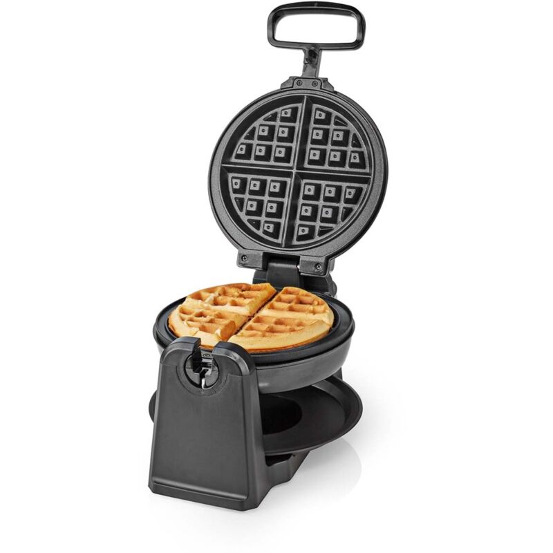 Con questa macchina per waffle Nedis® da 1000 watt con funzione rotante, puoi cuocere i waffle più gustosi in pochissimo tempo. Grazie al diametro di 17 cm è possibile cuocere in modo uniforme 4 waffle contemporaneamente. La funzione rotante assicura che i waffle siano cotti in modo uniforme e perfettamente dorati. Con la manopola di controllo della temperatura regolabile puoi cuocere i waffle esattamente come desideri. La luce indica esattamente quando la macchina per waffle è pronta per l'uso. Le teglie da forno di alta qualità con rivestimento antiaderente sono dotate di un ampio canale di scolo tutt'intorno per raccogliere l'impasto in eccesso. Questo, in combinazione con il vassoio raccogligocce rimovibile, facilita la pulizia dopo l'uso, poiché l'impasto in eccesso viene raccolto quando si gira la macchina per waffle. La macchina per waffle ha una maniglia integrata cool-touch, con la quale puoi tenere e girare in sicurezza la macchina per waffle cottura al forno. I piedini