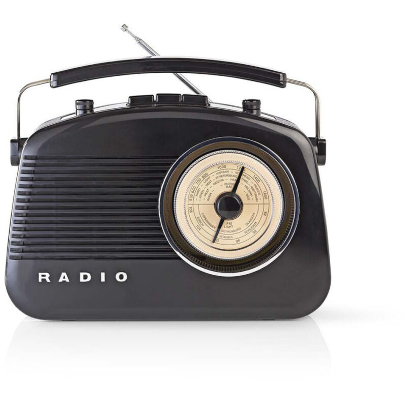 Radio AM/FM dal design retrò con una grande manopola rotante che ti consente di sintonizzarti su qualsiasi stazione desideri. Include controlli di volume e tono che consentono di regolare la chiarezza del suono.Telecomando: NoGamma di frequenza: 88...108,5 MHzUtilizzo: PortatileTensione in ingresso: 210-230 VCAColore: NeroMateriale: PlasticaMax. frequenza: 108,5 MHzMin. frequenza: 88 MHz Bande radio: AM, FMRMS: 1.5 WSfunzione snooze: NoTipo di spina: Euro / Tipo C (CEE 7/16)Tipo di sintonizzazione: AnalogicoTipo di batteria: 6x C/LR14