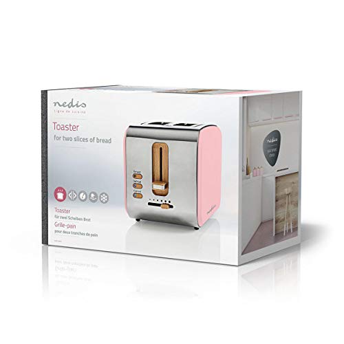 Articolo consegnato: 1 x Nedis Tostapane Soft Touch, con Funzione di Riscaldamento, Scongelamento e Annullamento, 6 Diversi Livelli di Doratura, Rosa