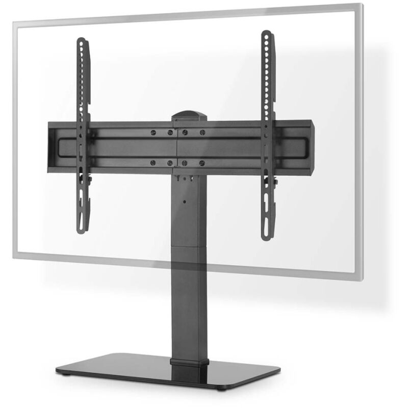 Questo supporto TV da tavolo girevole universale Nedis è la combinazione perfetta di stile, funzionalità e praticità per le tue esigenze di intrattenimento. Con questo supporto per monitor e schermo puoi posizionare facilmente un monitor di grandi dimensioni o uno schermo TV, ad esempio sulla scrivania o sul mobile TV. Il supporto è universale e supporta una dimensione massima dello schermo da 37 a 70 pollici e un peso massimo di 40 chilogrammi. Questo è più che sufficiente per quasi tutti i monitor di queste dimensioni. Questo elegante supporto nero aggiunge un tocco di raffinatezza alla tua casa o al tuo ufficio. Sperimenta una stabilità senza pari con la sua base in vetro temperato da 8 mm, mantenendo la tua TV saldamente in posizione. L'installazione è semplicissima e richiede meno di 20 minuti, grazie al suo design intuitivo. Personalizza la tua esperienza visiva con la regolazione dell'altezza verticale in 3 posizioni e un raggio di rotazione di +35 ° / -35°, garantendo