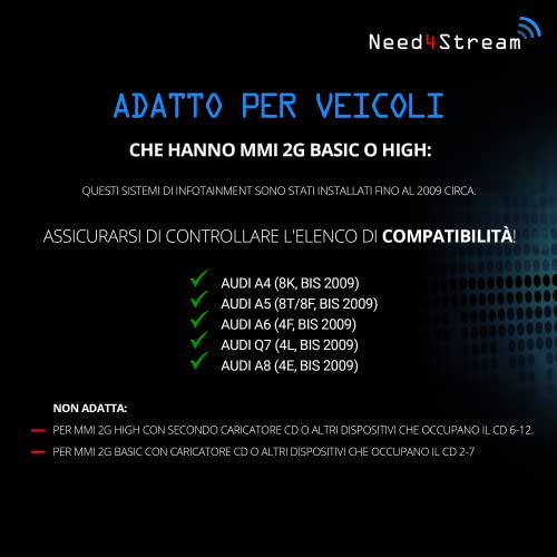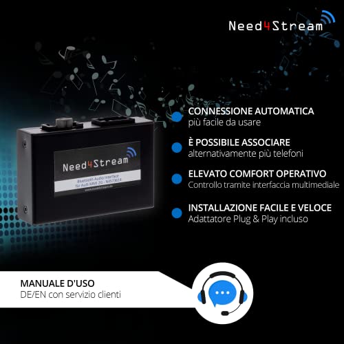 Need4Stream N4S73614 A2DP - Interfaccia audio Bluetooth con indicatore di titolo per MMI 2G, compatibile con Audi A4 8K, A5 8T/8F, A6 4F, Q7 4L, A8 4E, compatibile con iPhone, Android e servizi di