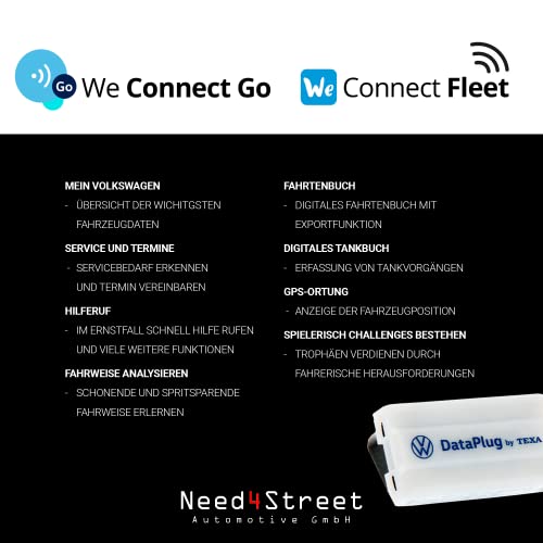Need4Street Data Plug 5GV051629M Compatibile con Volkswagen, Dataplug per Smartphone App We Connect Go Go Dati del veicolo in tempo reale tramite Bluetooth, in set con cuneo di smontaggio