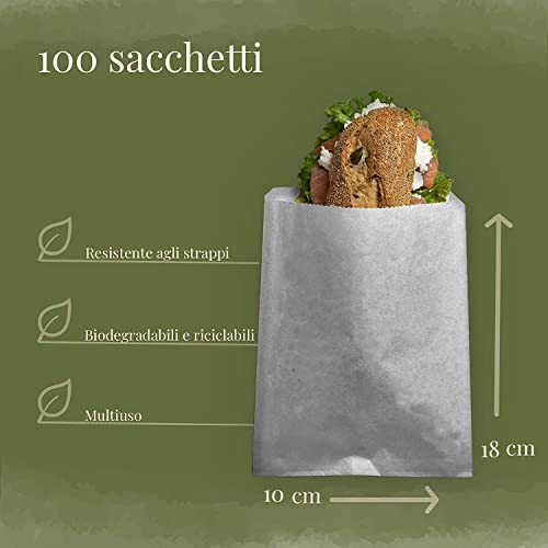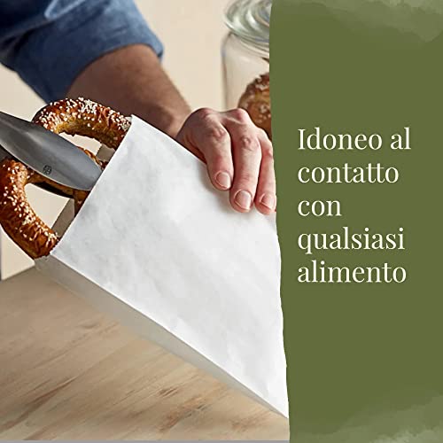 NEEDO - Sacchetti Carta per Alimenti 100pz Taglia S cm10x20 Sacchetti Bianchi Carta Resistenti Riciclabili - Sacchetti Carta Kraft per Take Away Pane Dolci Castagne - Sacchetti Carta Bianchi 100% Ecologici