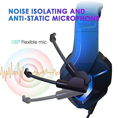 NEEDONE Cuffie da gioco con microfono per PS4 Gamer Headset per PS5 Xbox One Switch PC Fortnite Game Mac Laptop K19 Cuffie da Gioco con 3.5mm Jack LED Controllo Volume e Bass Stereo-Blu