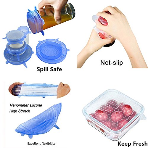 Coperchi in silicone regolabili e riutilizzabili - Coperchio della tazza super flessibile si allungherà per 1-3 cm, adattabile a diverse dimensioni e forme di contenitori. Questi coperchi possono essere facilmente lavati e utilizzati più e più volte senza doversi preoccupare di buttarli fuori. Conveniente e risparmio di denaro