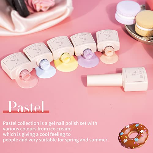 Neeko Smalto Semipermanente Pastello, 6 Colori Per Unghie, Lavanda Caramella Rosa Giallo Chiaro, Set In Gel UV, LED, Kit Nail Polish, Soak Off