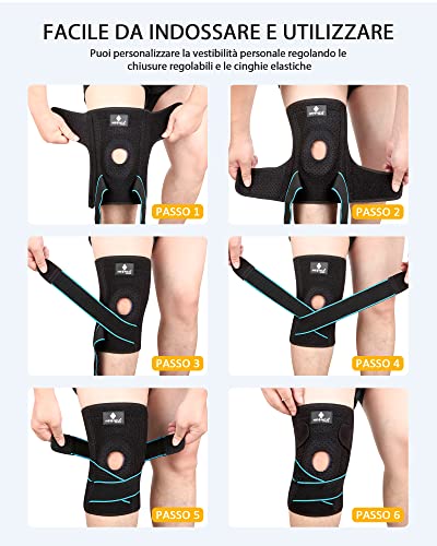 Design brevettato regolabile e aperto - appositamente progettato per persone con lesioni alla rotula o alle articolazioni, il che significa che il supporto per ginocchio si adatta perfettamente al ginocchio e strisce antiscivolo in silicone e tessuto altamente elastico per evitare scivolamenti e cadute durante l'allenamento. Ergonomico: 360° si adatta perfettamente alla rotula curva. Più spesso rispetto ad altre ginocchiere, per offrire un ulteriore rinforzo senza rinunciare al comfort