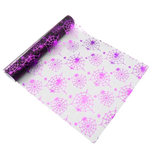 NEERIX Runner da tavolo di Halloween con sacchetti di zucchero, runner da tavolo per Halloween, runner da tavolo in ragnatela, rotolo di tulle per borse di zucchero