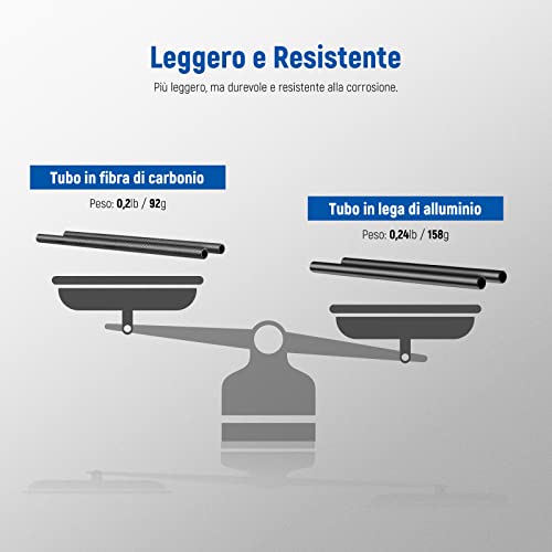 【Leggero ma robusto】 Rispetto alle tradizionali aste in lega di alluminio, il peso di questo set di aste da 15 mm è significativamente ridotto a 92 g. Eppure la rigidità rimane per supportare vari accessori con grande sicurezza