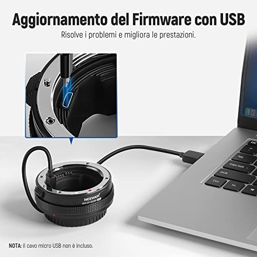 Funzionalità completa: dotato di contatti elettrici, l'adattatore a baionetta mantiene la messa a fuoco automatica e la stabilizzazione dell'immagine nell'obiettivo e trasmette dati EXIF completi dalla fotocamera