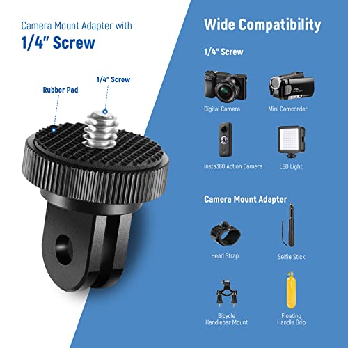 [Adattatore per Fotocamera con Vite 1/4”] La vite 1/4” standard comodamente accetta un'action cam, una mini videocamera e degli altri accessori compatibili con foro filettato 1/4”.