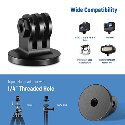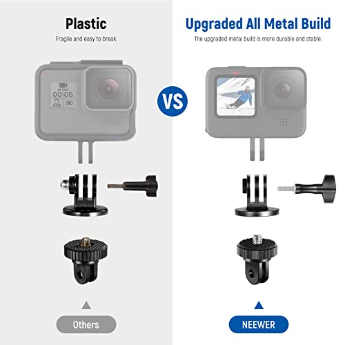 NEEWER Adattatori in Metallo Compatibili con GoPro Hero 12 11 10 9 8 7 6 5 Max Fusion Insta360 AKASO Osmo DJI Action 4 3 2, 2 Adattatori Vite 1/4” con Vite a Testa Zigrinata per Monopiede Action Cam