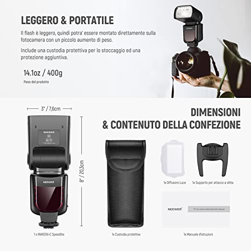 NEEWER Aggiornato NW635II-C Speedlite Flash TTL con LCD Display, Compatibile con Canon EOS R6 R5 R3 R M6 850D 800D 760D 750D 650D 600D 7D Mark II 7D 6D Mark II 6D 5D Mark IV/III 1D Mark III