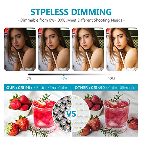 INTENSITÀ & TEMPERATURA DI COLORE REGOLABILI: Con i 330 bulbi bianchi ed i 330 gialli di lunga durata, questo pannello LED riesce ad illuminare con il bilanciamento del bianco variabile da tungsteno-luce naturale 3200-5600K. I 2 regolatori sul retro servono per modificare la temperatura di colore e l'intensità. L'indice di resa cromatica da 96+ può ripristinare autenticamente i colori attuali di ritratti o prodotti.