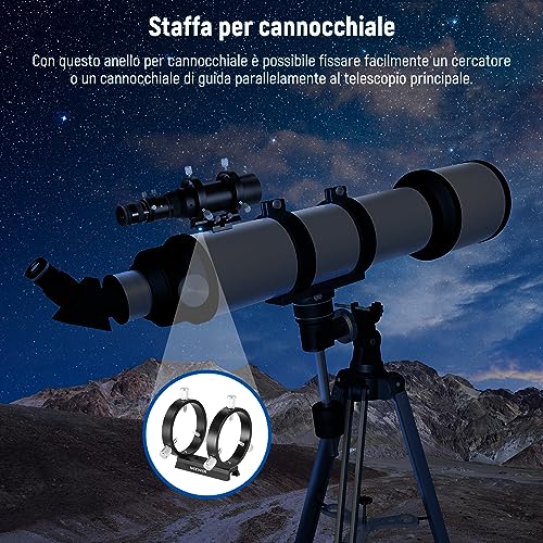 【Per Cannocchiali/Guidoscopi da 43-68mm】 Fissare facilmente il cercatore o il cannocchiale di guida parallelamente al telescopio principale utilizzando una vite da 1/4". Gli anelli di guida doppi regolabili sono stati realizzati su misura per ospitare cannocchiali di guida di diametro pari a 1,69"-2,67"/43-68mm, anche con una barra a coda di rondine in stile Vixen con viti M6/M8 per dispositivi di dimensioni o modelli diversi.