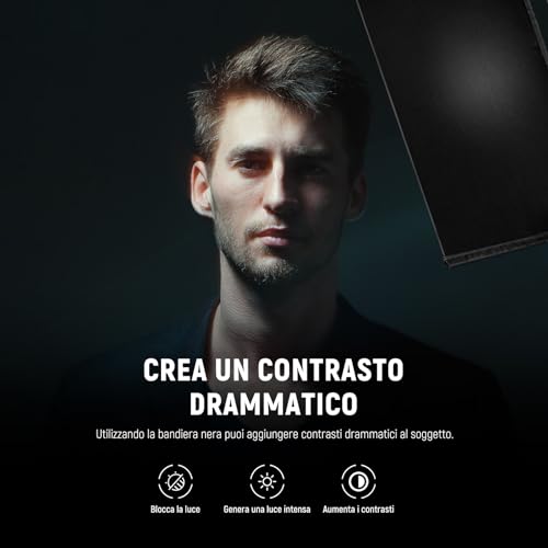 【Kit Versatile di Modificatori di Luce】Con cinque telai metallici rimovibili, cinque bandiere fotografiche da 24"x36" (60x90cm) e quattro telai circolari/rettangolari, questo kit versatile di modificatori di luce consente ai fotografi di combinare gli accessori e modellare le luci con illimitata creatività. I telai pieghevoli e i tessuti leggeri rendono anche questo kit facile da trasportare