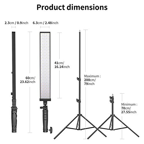 Neewer Kit 2pz Bastone Luce 210 LED Dimmerabile Bicolore, 21W 3200-5600K con Cavalletto, Telecomando a Infrarossi, Filtri Colorati (Ross, Giallo, Blu) & Borsa di Trasporto per Fotografia