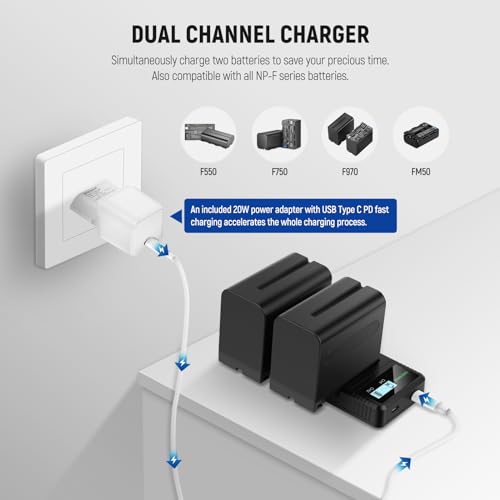 NEEWER Batteria NP-F970 da 10050mAh con Set Caricatore Rapido PD da 20W, Batteria di Ricambio da 2 Pacchi Compatibile con NEEWER Slider Motorizzato LED Anello Luminoso Monitor Videocamera Sony