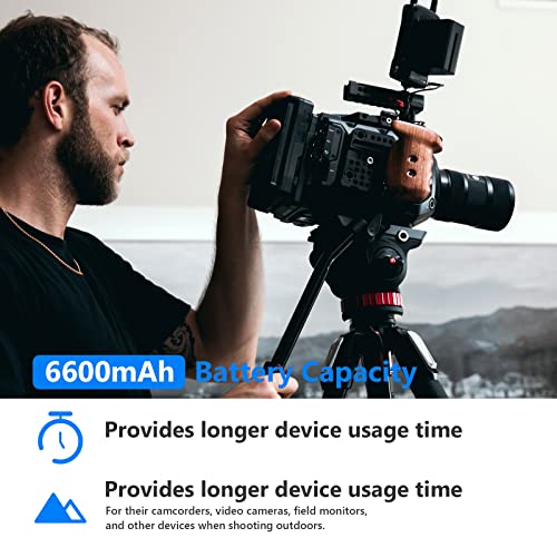 [Elevata Potenza della batteria] Le 4 batterie NP-F970 ad alta capacità 6600mAh forniscono una potenza sufficiente per riprese all'aperto con videocamere, monitor da campo, luci anulari e luci video LED.