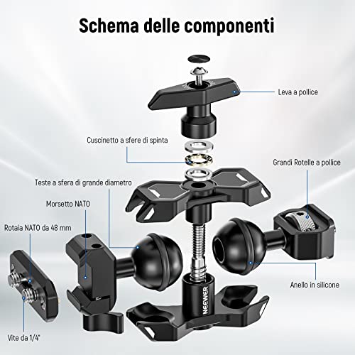 NEEWER Braccio Magico Articolato Flessibile con Teste a sfera, Morsetto NATO a Sgancio Rapido e 48mm Guida NATO e vite da 1/4" con Perno, Supporto per Monitor Compatibile con SmallRig Cage, UA011