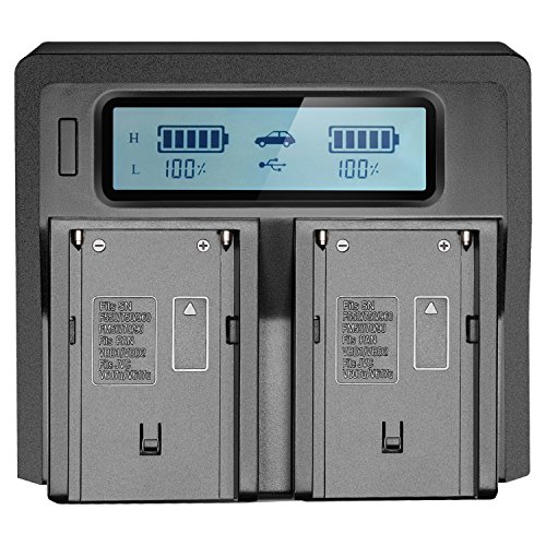 Neewer Caricabatterie Doppio con Display LCD & 3 Plug (Spina USA + Spina UE + Adattatore per Auto) per Batterie di Videocamere Sony