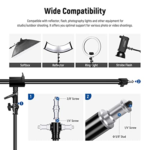 NEEWER 3m Cavalletto a Cuscino Ammortizzatore ad Aria, Regolabile Stand con Asta di Supporto, Contrappeso, Sacco di Sabbia, 1/4” Vite, per Softbox, Flash, Ombrello, Luce Anulare, Massima Portata 5kg