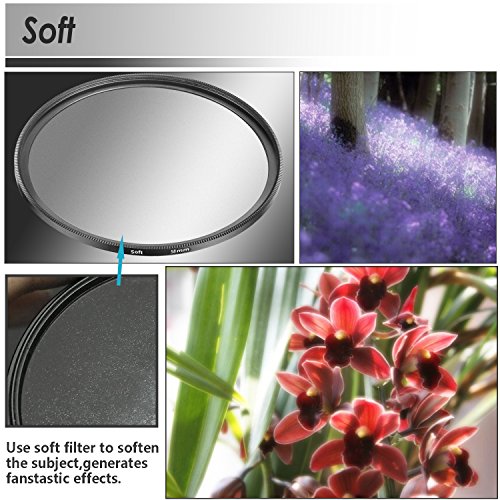 Sono inclusi nel kit: (1) 58mm Filtro Soft Focus, (1) 58mm Filtro Warming, (1) 58mm Filtro Rotante a Effetto Stella a 4 Punte, (1) Custodia per Filtri