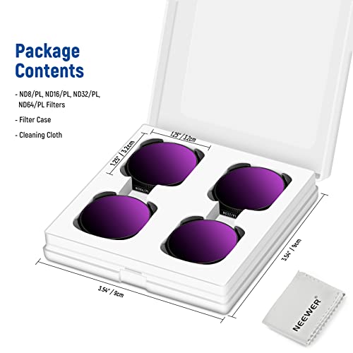 NEEWER Set di Filtri ND Compatibile con GoPro Hero 9 Hero 10 Black, 4pz (ND8/PL, ND16/PL, ND32/PL, ND64/PL), Vetro Ottico HD, Accessori per Action Camera, Filtri a Densità Neutra/Polarizzatori