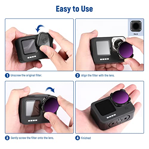 [Perfettamente Compatibili con Hero 9/10] Realizzati appositamente per essere compatibili con GoPro Hero 9 Hero 10, questi filtri consentono un montaggio rapido e semplice. I filtri proteggono anche l'obiettivo da polvere e graffi.