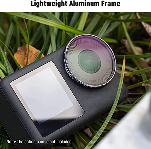 [Vetro Ottico a Definizione Alta Multi-rivestito a Doppio Lato] Costruiti con vetro ottico a definizione alta, i filtri offrono immagini a nitidezza elevata bloccando l'illuminazione intensa. I filtri adottano multipli strati di nano-rivestimento su tutti e 2 i lati, rendendo la superficie efficacemente protettiva contro polvere, graffi, acqua, olio e impronte digitali. Inoltre, i filtri stessi funzionano come uno strato di protezione per l'obiettivo originale dell'action cam.