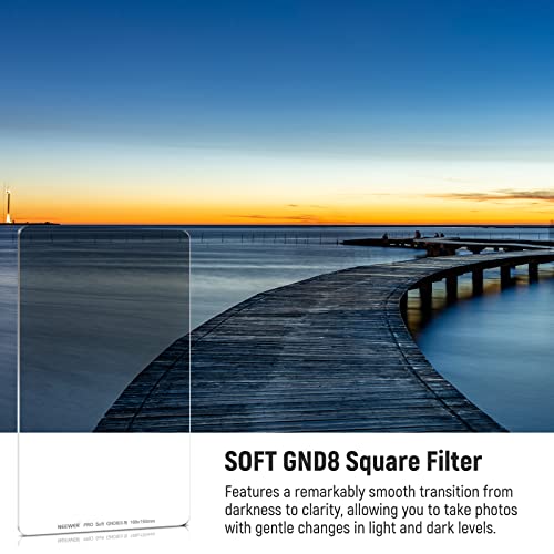 NEEWER Filtro Soft Graduato ND8 Quadrato, 100x150mm Filtro SGND8 (3 Stop) 2mm Spessore con Vetro Ottico HD Multi-strato, per Foto di Paesaggio o a Lunga Esposizione