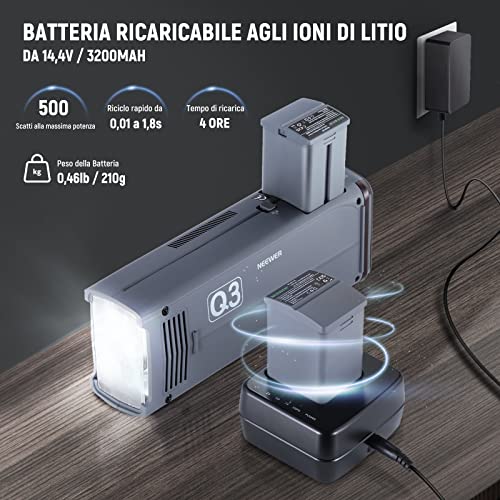 NEEWER Flash TTL Q3 200Ws 2,4G (2a Versione), Luce 1/8000 HSS, Monoluce Fotografica/Attivatore QPRO-N Compatibile con Nikon, Diffusore/Batteria 3200mAh, 500 Scatti a Piena Potenza, Riciclo 0,01-1,8s