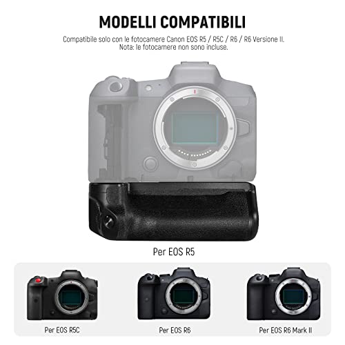 【Modelli Compatibili】L'impugnatura portabatterie NEEWER BG-R10 è compatibile con le fotocamere Canon EOS R5 R5C R6 R6 Versione II. Consente di effettuare riprese fotografiche / video nitide ad inquadratura verticale, fornendo un'alimentazione più potente