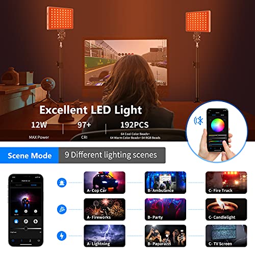 NEEWER Kit di Luce LED RGB190 da Tavolo & Stand con Clip-C, Controllo via APP, 2pz Luce con 360° Colore Pieno, CRI97+, 3200-5600K & 9 Effetti RGB per Illuminazione YouTube, con Batterie & Caricatore