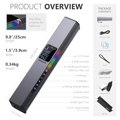 NEEWER RGB Luce Video LED a Bastone, Touch Bar e Controllo APP, Bacchetta Magnetica per Illuminazione, Dimmerabile 3200K~5600K CRI98+ Luce LED a Colori con Batteria 6400mAh, 17 Scene, RGB1(Argento)