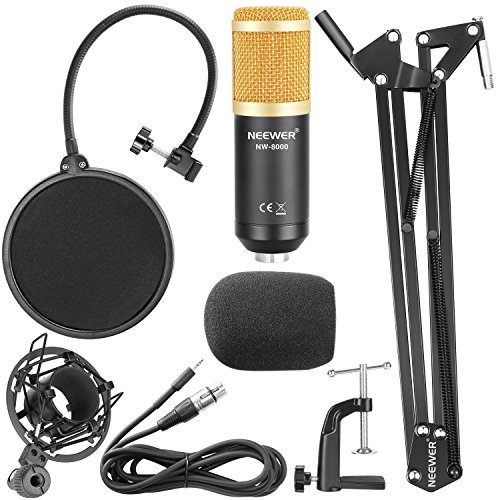 Neewer Microfono a Condensatore NW-8000 Studio Trasmissioni Registrazioni: Microfono a Condensatore Asta Sospensione a Forbici con Supporto Anti-vibrazione Filtro Pop & Serratura da Tavolo